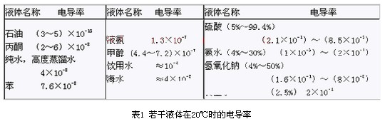 工業(yè)用水及其水溶液的電導(dǎo)率大于10-4S/cm,酸、堿、鹽液的電導(dǎo)率在10-4~10-1S/cm之間,使用不存在問題,低度蒸餾水為10-5S/cm也不存在問題。石油制品和有機溶劑電導(dǎo)率過低就不能使用。表1列出若干液體的電導(dǎo)率。從資料上查到有些純液或水溶液電導(dǎo)率較低,認為不能使用,然而實際工作中會遇到因含有雜質(zhì)而能使用的情況,這類雜質(zhì)增加了電導(dǎo)率。對于水溶液,資料中的電導(dǎo)率是用純水配比在實驗室測得的,實際使用的水溶液可能用工業(yè)用水配比,電導(dǎo)率將比查得的要高,也有利于流量測量。