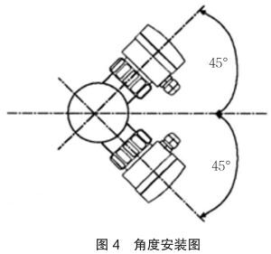 垂直安裝時(shí)確保流向由下而上,如圖 4 中箭頭所示,應(yīng)與管道水平中心線成 45 度角安裝二次供水流量計(jì)。