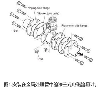 圖1.安裝在金屬處理管中的法蘭式給水管流量計(jì)。