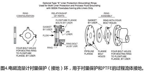 圖4.水處理流量計(jì)襯里保護(hù)(接地)環(huán),用于襯里保護(hù)和PTFE的過程流體接地。