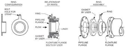 圖6.安裝在非金屬管道中的水處理流量計(jì)晶片式流量管(未顯示螺栓)。