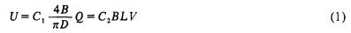 智能型電磁流量計是根據(jù)法拉*電磁感應(yīng)定律來測量導(dǎo)電性液體體積流量的儀表,其感應(yīng)電動勢U與流速V以及流量Q的關(guān)系可由下式表示